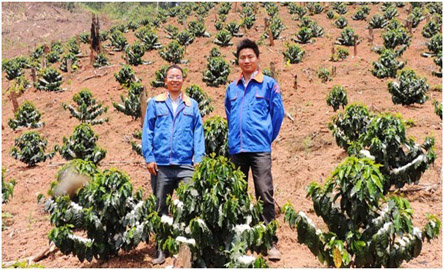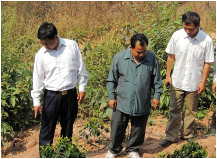 二、副县长及国家农林部部长查看2012的咖啡树长势。