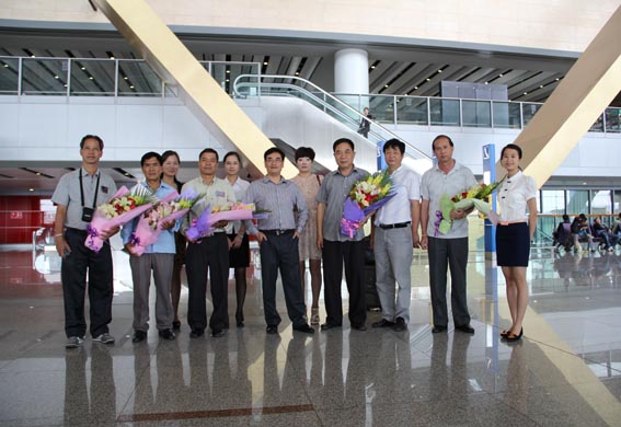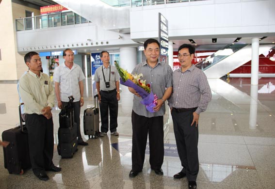 2013年6月5号参加南博会的老挝领导团乘飞机来到昆明,昌胜达公司董事长尹新华先生,亲自到机场迎接老挝领导团的到来,在机场举行了热烈的欢迎仪式,并送上早已准备好的鲜花。