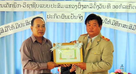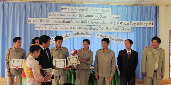 丰沙里省副省长为教师颁发一等奖奖状