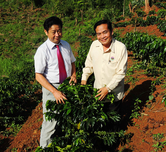 总经理与老挝电视台记者咖啡基地合影