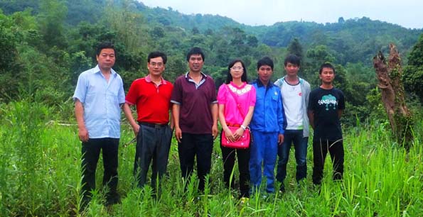 董事长尹新华(右四)、战略发展部部长黄娟(左二)与勐迈子公司员工合影
