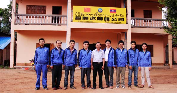 丰沙里省禁毒委主任一行与(老挝)昌胜达咖啡公司员工合影