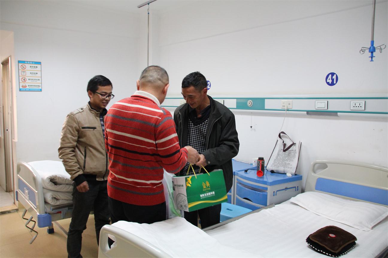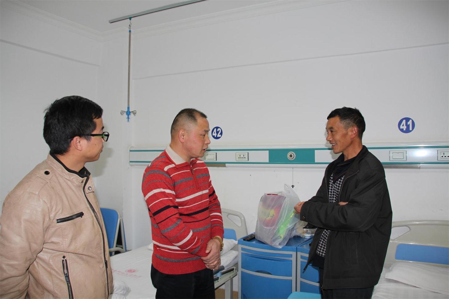 病床前,朱翔辉细询问了家属的病情及治疗情况,为他们送上了慰问品。同时鼓励王权吕及其家属要有信心,保持良好的心态,坚定信心战胜病魔,安心养病,争取早日康复;并表示公司将尽可能的解决王权吕家中所遇到的困难。