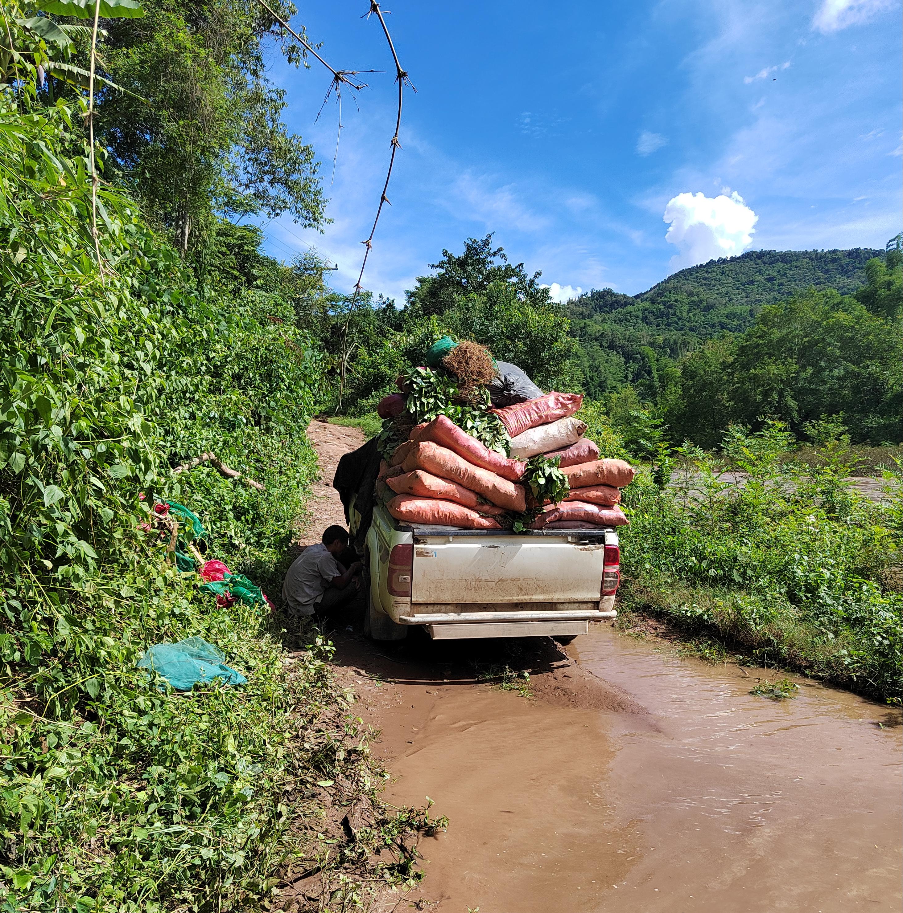 当日,公司特意选用丰田皮卡车负责此次咖啡苗的初始运输工作。从奔怒咖啡苗圃基地启程,车辆行驶路程超过200公里,最终顺利抵达勐迈县。在整个陆路运输途中,工作人员悉心照料咖啡苗,凭借合理的装载布局与必要的保湿手段,全力保障咖啡苗在长途颠簸中始终维持良好状态。