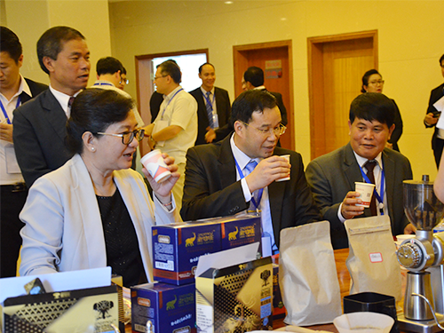 老挝工贸部部长开玛尼·奔舍那一行品尝老咖啡