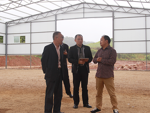 昆明市商务局调研员马为麟(左一)莅临仙塘加工厂考察